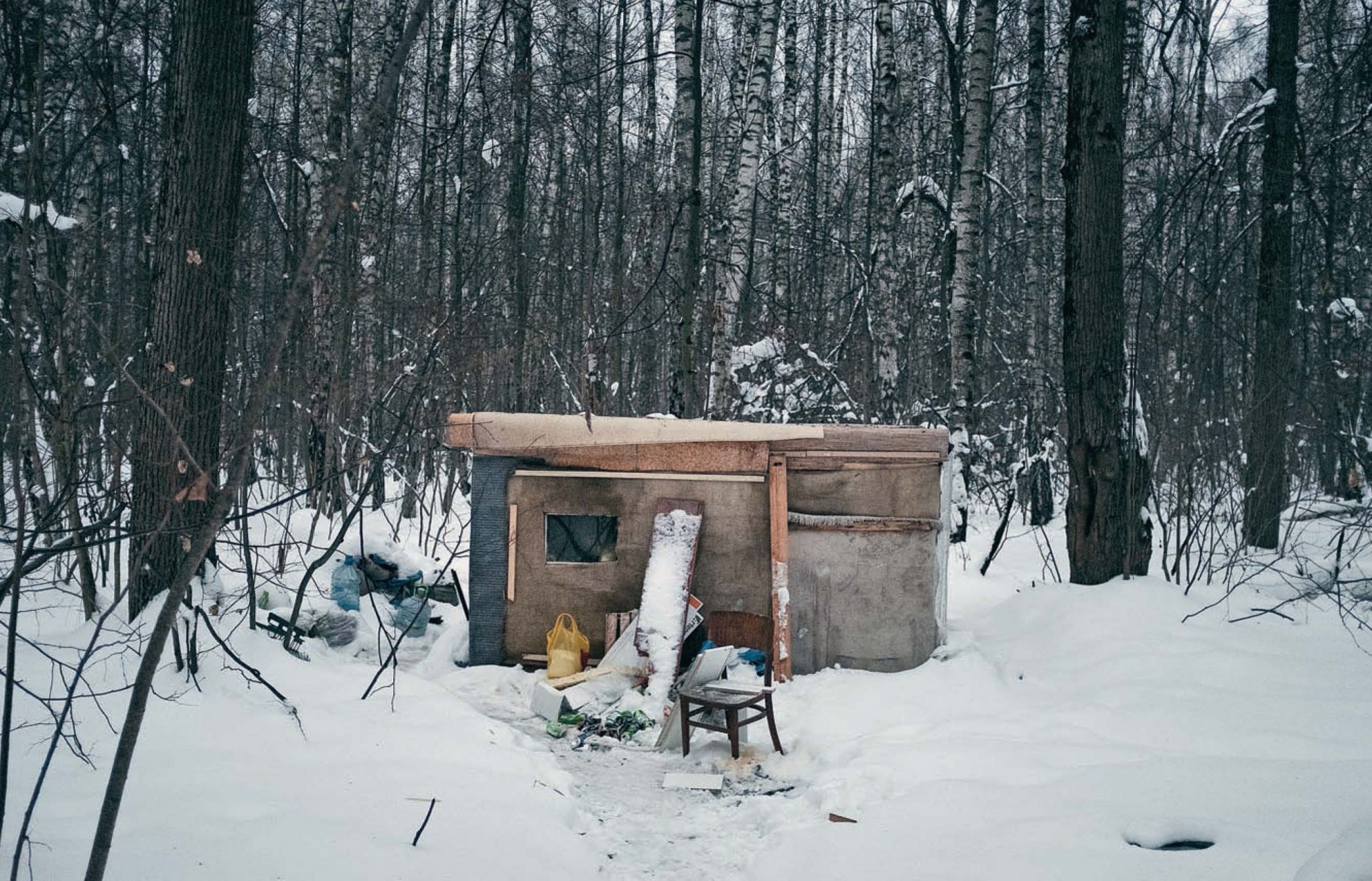 Прямо сейчас, в февральские морозы в подмосковных лесах в хижинах-времянках и палатках живут люди, лишенные нормального жилья. Об этом корреспондент «РР» узнала на суде по иску актера из семейного сериала «Папины дочки» Сергея Фролова. Он утверждает, что его квартиру отняли у его мамы «черные риелторы». На суде были десятки жертв той же кредитной организации, что и актер Фролов; по их следам корреспондент «РР» отправилась в лес.