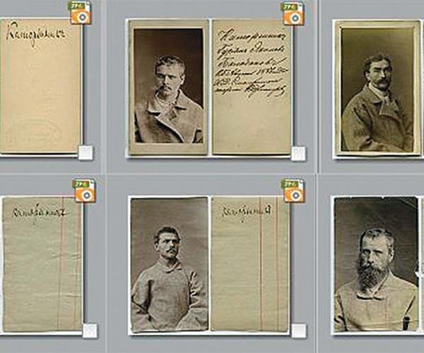 24 фотографии лежали в коробке. Человек, принесший коробку в букинистический магазин «На Литейном», сказал, что купил ее на блошином рынке. Даты — от 1884 до 1896 года. Из 24 изображенных человек как минимум пятеро — евреи. На одной из фотографий портрет серийного убийцы.
