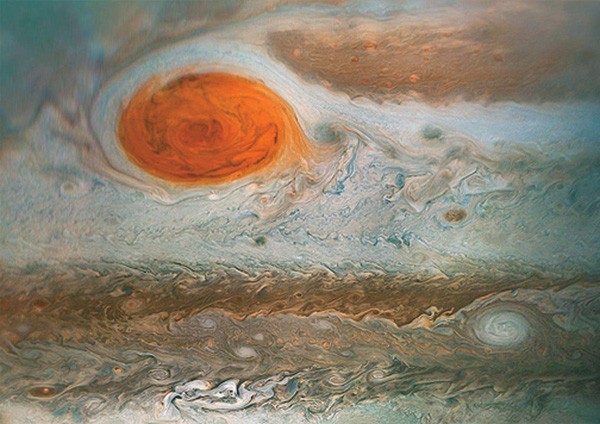 Недавно на Марсе нашли подледное озеро, вслед за тем водяной лед в больших количествах обнаружился на Луне, а теперь дошла очередь и до Юпитера. С помощью телескопов обсерватории Кека и инфракрасного телескопа IRTF, позволяющих заглянуть внутрь сверхплотной атмосферы планеты гиганта, астрофизики NASA изучили Большое Красное пятно — самый большой вихрь в Солнечной системе, намного превосходящий по размерам Землю. Оказалось, в нем много воды и кислорода, причем водяные облака там состоят не из водяного пара, а из жидкой воды или даже изо льда.