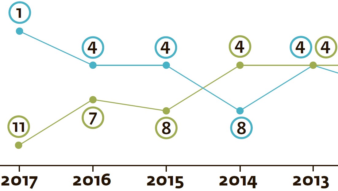 В любом случае победа по физике — все равно радость, зато с самыми престижными олимпиадами, математическими, происходит просто какая-то катастрофа. В девяностые и нулевые мы почти не выходили из пятерки стран-лидеров — отечественная математическая школа была достаточно сильна, чтобы на равных противостоять и огромному по населению Китаю, и привлекающим лучшие мозги со всего мира США. Но в десятые что-то изменилось — после нескольких лет застоя мы скатились до позорного 11-го места по рейтингу и 14-го по общемедальному зачету. Выходит, теперь мы соревнуемся не с лидерами, а с Грузией и Монголией? Далеко идущих выводов делать не хочется, кроме самого очевидного: пора оставить радужные иллюзии о наших победах и подумать о том, чего не хватает нашей системе школьных олимпиад.