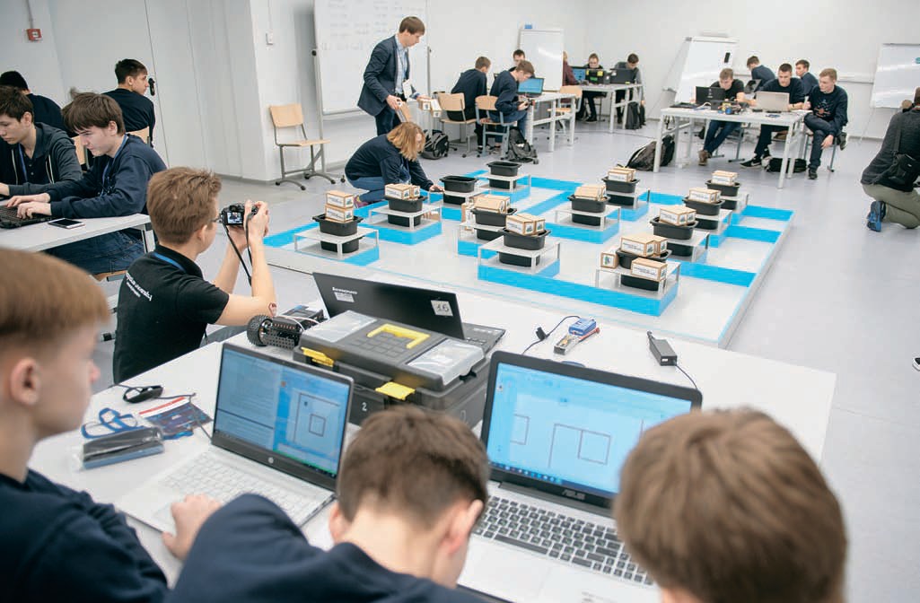 Мы бродим между площадками, на которых учатся и соревнуются дети. Здесь все придумали прогрессоры из ведущих технических вузов и инновационных компаний страны. В этом еще одна важнейшая особенность Олимпиады НТИ — здесь предельно короток путь от технологической компании до талантливого школьника, а в качестве тренеров выступают сами инженеры, разработчики и люди из бизнеса, с переднего края.
