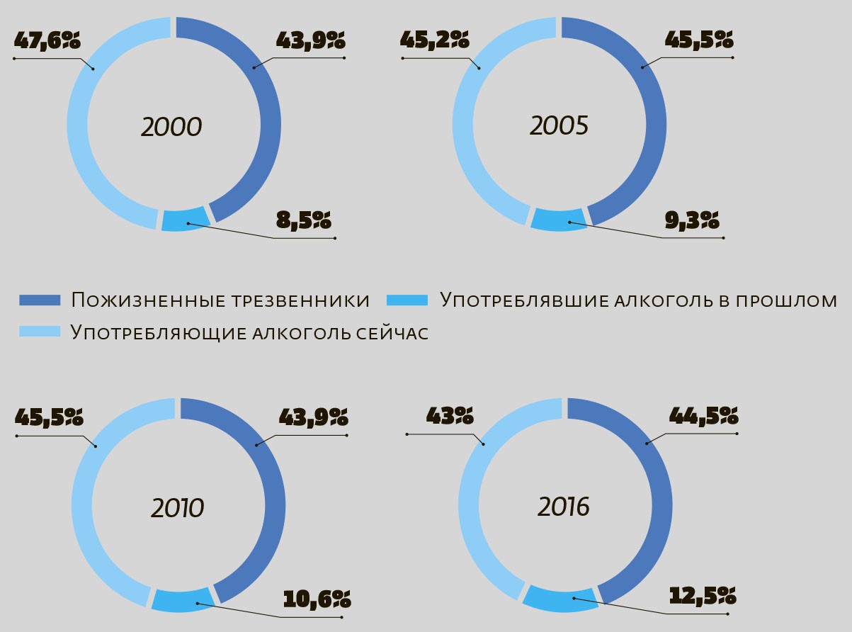 И все же авторы доклада отмечают, что за пять лет ситуация со спиртным в Российской Федерации заметно улучшилась. Если в 2011 году по количеству выпитого чистого алкоголя на душу населения мы были четвертыми в Европе, то сегодня в десятку «самых пьющих» европейских стран уже не входим.