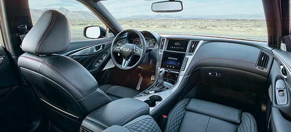 Базовый седан в комплектации Pure по умолчанию имеет приличный набор оборудования, включая шесть подушек безопасности, 18-дюймовые колеса, систему бесключевого доступа, двухзонный климат-контроль и переключатель Drive Mode Selector. Кожаная отделка салона добавляется в исполнении Luxe, к которому можно дополнительно заказать один или несколько пакетов оснащения. За доплату Q50 дополнят навигатором, светодиодными фарами, электроприводами сидений и руля, отделкой деревом, адаптивной системой освещения, камерами кругового обзора и системой автопарковки.