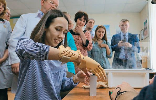 Студентке, потерявшей кисть, установили протез, «распечатанный» на 3D-принтере. На изготовление модели, которая позволяет сжимать пальцы, брать и удерживать предметы, ушло 10 дней. Активный протез, разработанный на базе Сколково, установили в Татарстане впервые.