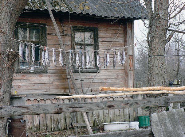 На прощание Петр Владимирович дарит мне пакет рыбы — подлещиков и огромного язя. Заметив, что я фотографирую чехонь, что сушится у дома, снимает с веревки пару рыбин и протягивает мне: в Питере довялишь. Оглядывается по сторонам — чем бы еще меня одарить. Я тороплюсь проститься, пока дядя Петя ничего не высмотрел и не подарил мне, например, дом.