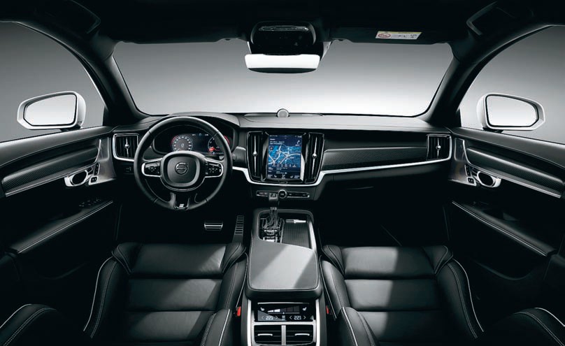 Интерьер не просто повторяет идеи, дебютировавшие в XC90, но и вводит ряд оригинальных элементов. Строгая геометрия с симметричными «крыльями» консоли в окружении благородных материалов никуда не делась; на месте дисплей приборов и огромный вертикальный планшет медиасистемы, где большая часть функций собрана в недрах графического меню. Но флагманскому седану присущи более строгие линии панели и дверных карт, а по бокам от дисплея появились вертикальные диффузоры климатической системы.
