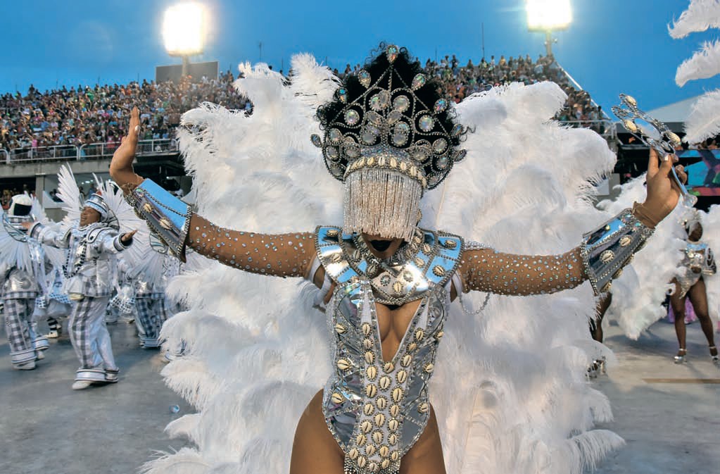 В самом деле, нужно обладать огромной силой духа, не говоря уже о силе физической, чтобы в течение 70 минут, под бешеный ритм батерии (секция ударных инструментов, целый оркестр из трехсот музыкантов, которые играют в ритме 2/4) танцевать самбу посреди ревущего стадиона, под пристальными взглядами почти сотни тысяч болельщиков, а также журналистов, комментаторов и судей. Занятие, согласитесь, не для кротких.