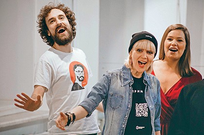 Он, Док, конечно, об этом едва ли задумывался — просто рос, звучал все сильнее и увереннее. Не боялся говорить ни про дело Магнитского («Час 18»), ни про болотные посадки («Болотное дело»), ни про бесланских матерей («Новая Антигона»). Все эти спектакли поставила мягкая и теплая, но стальная в своей творческой бескомпромиссности Елена Гремина. Она придумала «Театр.doc на гастролях в Москве» — когда Док, выселенный с Трехпрудного, бесконечно менял дом. Она звала «посмотреть репетиции» полицейских с собакой, дежуривших возле театра до премьеры «Болотного дела».