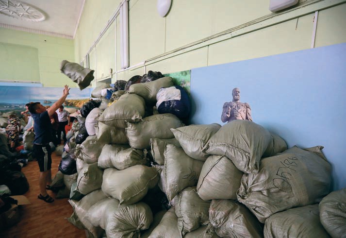 — Вон люди уже картофельное поле копают, — отец Андрей высовывается в окно и показывает на двух потных, покрытых пылью мужчин, копающих землю в обход черных луж. — А что им еще делать? Что зимой есть?.. Многие тут сейчас сидят, охраняют то, что осталось от мародеров. А эти едут отовсюду. Особая порода людей — асоциальные животные какие-то, — говорит он, и мне кажется, что он преувеличивает проблему мародеров из-за травматического опыта с «сектантами», перехватившими его гуманитарный груз. — Кому война, а кому мать родна… Вот! — он подскакивает за рулем, приближаясь к дому, где живет гадалка, собирается затормозить, но проезжает мимо. — Не пойду к ней, — говорит он. — Я все хотел к ней с крестным ходом сходить… Да только водяной к ней первым пришел. Она утонула.