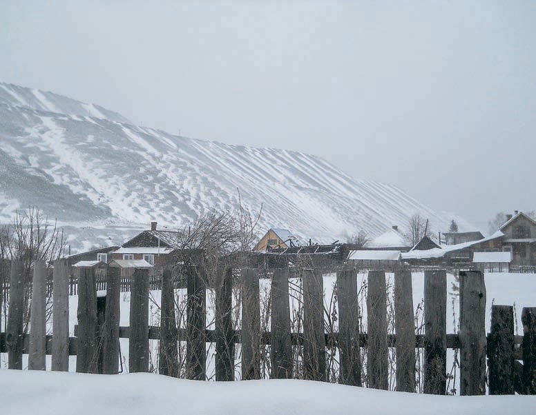 Стоя у подпертой осколком мрамора двери, Николай Михайлович курит и, щурясь, смотрит на дорогу сквозь снег. Он вышел посмотреть, не едет ли племянник. Его племянник — депутат городского собрания, а сам Николай Михайлович — наблюдатель от КПРФ.