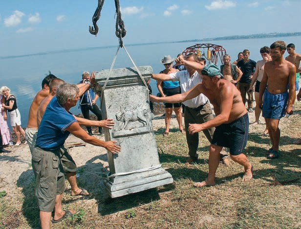 — Это византийский якорь примерно VI–VII веков нашей эры. Самый маленький — метр с небольшим в высоту; самый большой, он здесь лежит (показывает пальцем в воду), — около двух метров в высоту. Эти якоря из-за конфигурации лап очень плохо выполняли свою функцию на песчаном и илистом дне. Они предназначены цепляться за камни, за скалистое дно. Вероятно, в акватории Фанагории в VII веке потерпел крушение корабль — в шторм не смог удержаться на якоре и разбился о фанагорийский мол.