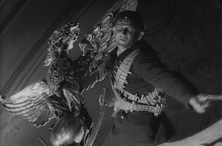 В 1927 году, к годовщине революции, Сергей Эйзенштейн снял поистине легендарный фильм, кадры из которого и по сей день путают с документальной хроникой той эпохи. В своей работе Эйзенштейн воссоздает события Октябрьской революции и штурм Зимнего дворца. Своей задачей режиссёр ставил в том числе создание картины без четкого драматургического сюжета и без главных героев, и это ему удалось. Эйзенштейн создаёт на экране убедительный образ нового человека - того, которого Хосе Ортега-и-Гассет назвал «человеком масс», и провозглашает новую эпоху.