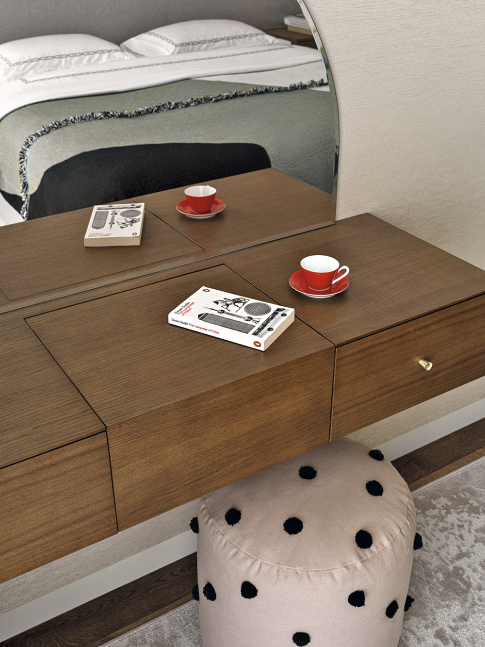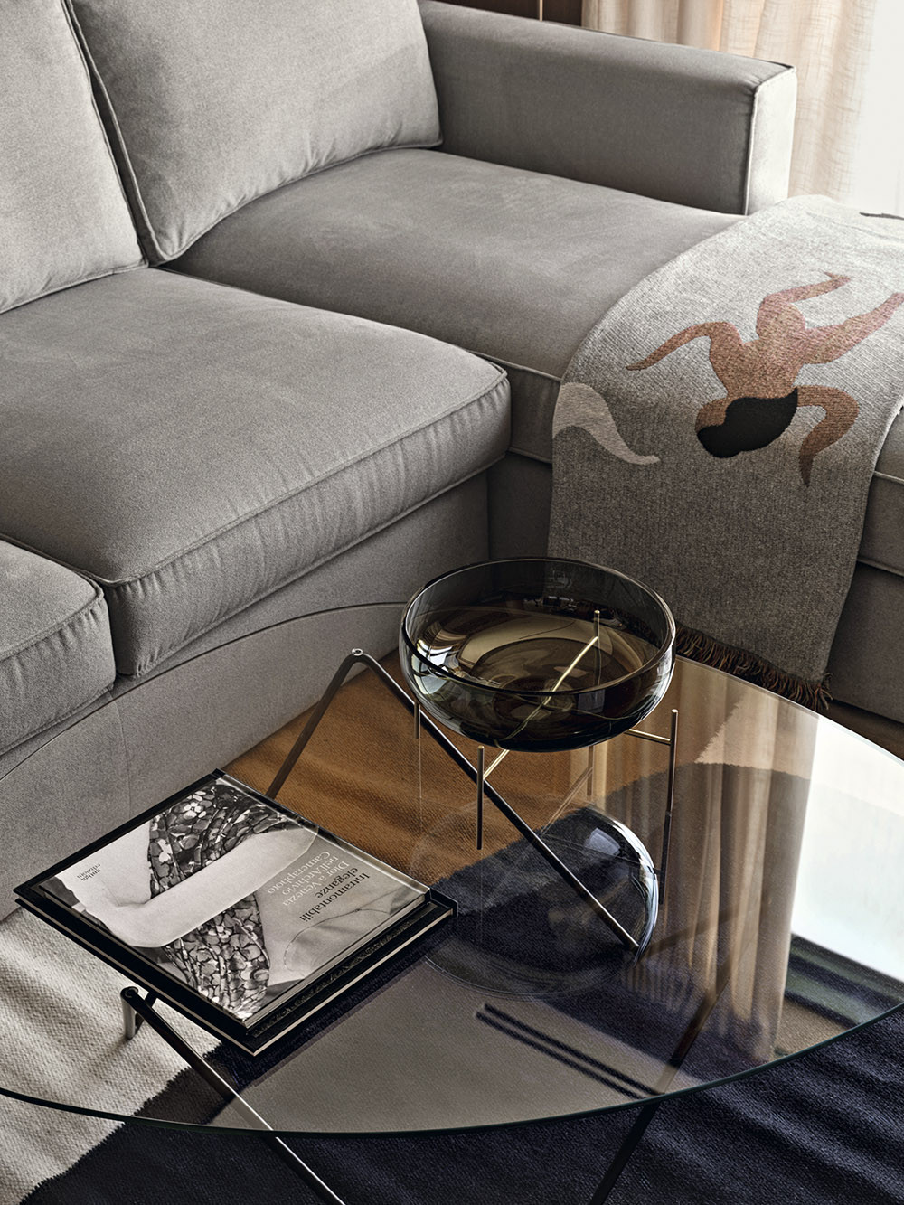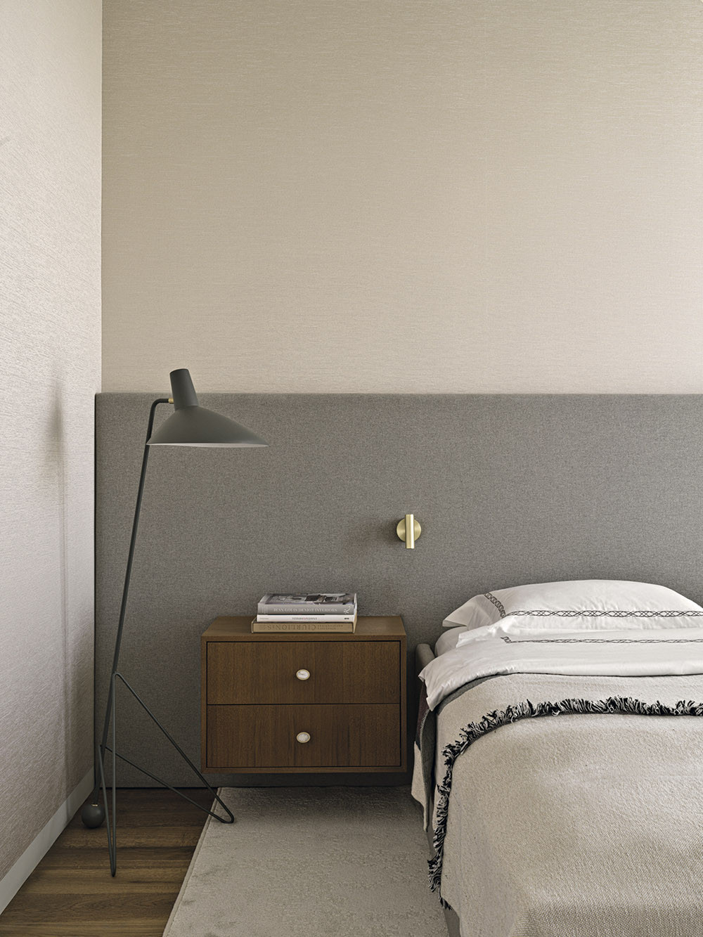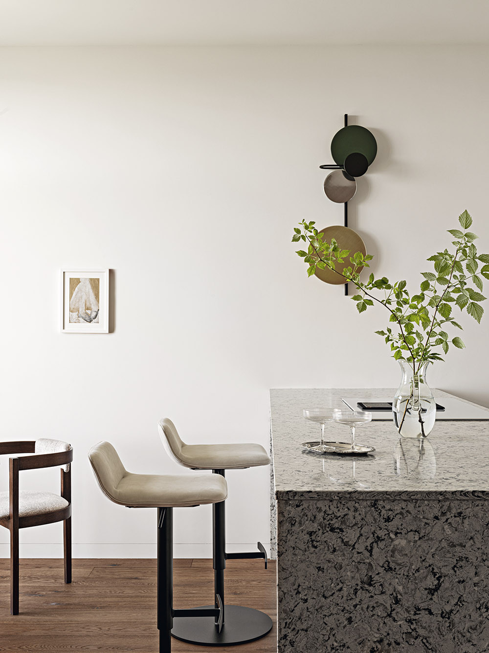 Мария признается, что в своих проектах часто использует дерево, стекло, фактурные обои, любит наполнять пространство искусством, уникальными винтажными предметами, создающими правильный настрой и контекст. В данном случае предметом особой гордости стало разработанное бюро решение для зонирования пространства, которое назвали «функциональный простенок». На сегодняшний день он является украшением объекта, местом притяжения и в то же время выполняет функцию буфета, телестены, декоративной консоли и местом установки новогодней елки. Облицовка оконных проемов деревянными панелями в в зоне гостиной выполнена виртуозно, направляющие штор скрыты в монтажной конструкции стеновых панелей, что позволило добиться эффекта монолитности стенового покрытия и сделать зону гостиной особенно торжественной. Благодаря продуманной совместно с заказчиками карте перемещений, место хранения организовано таким образом, что оно никак не привлекает к себе внимание и позволяет создать комфортную траекторию движения внутри квартиры. «Запрос нового времени, — говорит автор проекта, — состоит в том, чтобы при сокращении жилых площадей застройщиком сохранить необходимый функционал для наших заказчиков. Этот объект стал амбассадором реализации в проектах роскоши будущего».