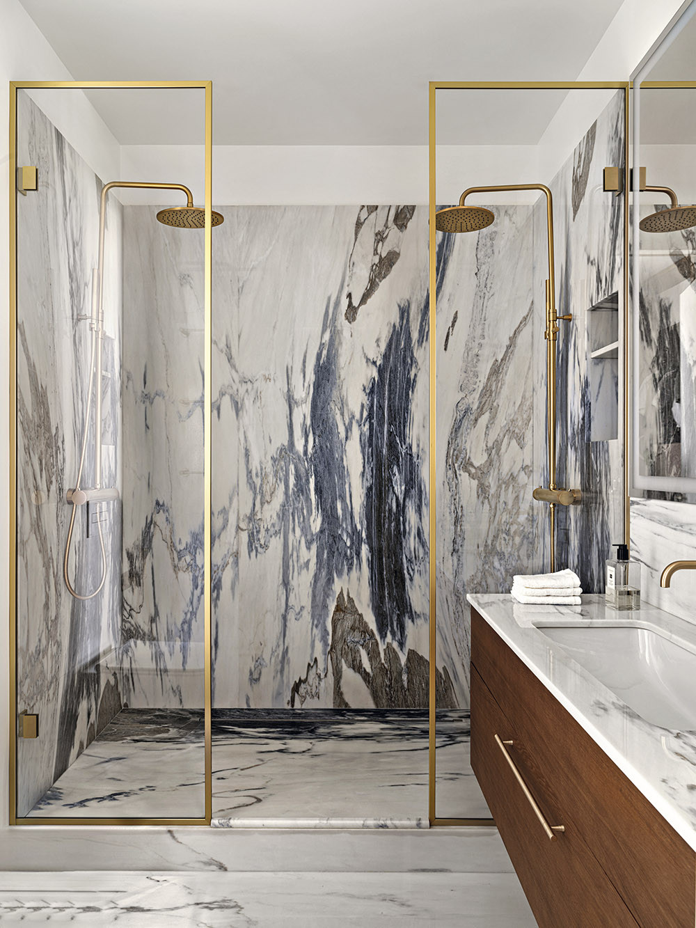 Пространство квартиры буквально залито светом: из панорамных окон открывается невероятный вид на лесопарковую зону. Именно эти факторы стали определяющими при выборе стилистической концепции объекта и создании пространства роскоши. Заказчики — молодая семейная пара — долго подбирала для себя квартиру: должно было совпасть множество факторов — от инвестиционной привлекательности до уникальности объекта. До начала строительных мероприятий была проведена большая работа по проектированию и согласованию в надзорных органах всех проектных решений. Это позволило реализовать проект в строгом соответствии с пожеланиями заказчиков.
