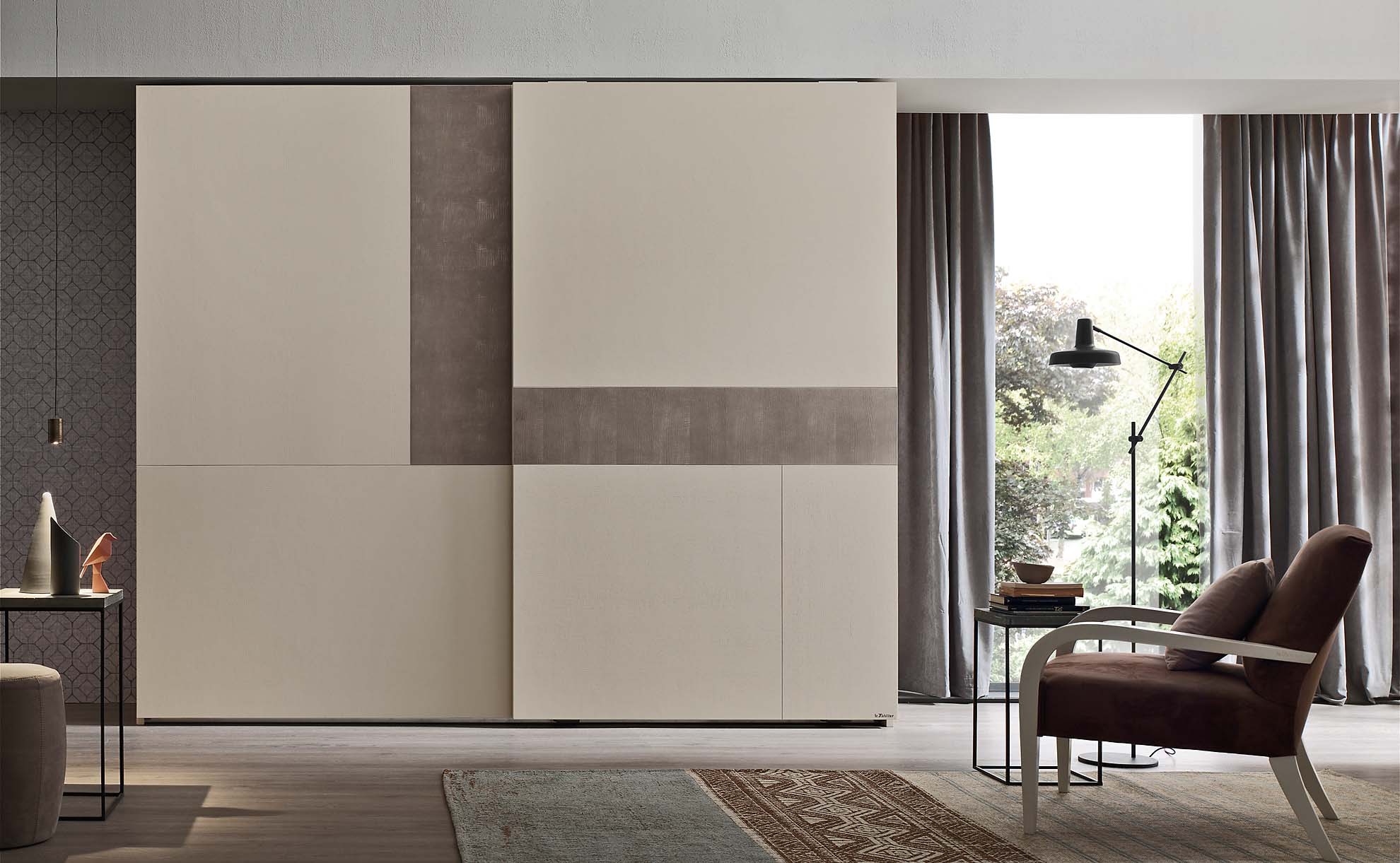 Гардероб Peperoncino из современной коллекции Le Spezie выпускается на фабрике Le Fablier. Он оснащён двумя гладкими раздвижными дверями, доступными как в обычном, так и в двухцветном исполнении. Фабрика предлагает гамму модных оттенков: серый, белый, натуральные оттенки табака, имбиря, слоновой кости. Салон Buon Giorno