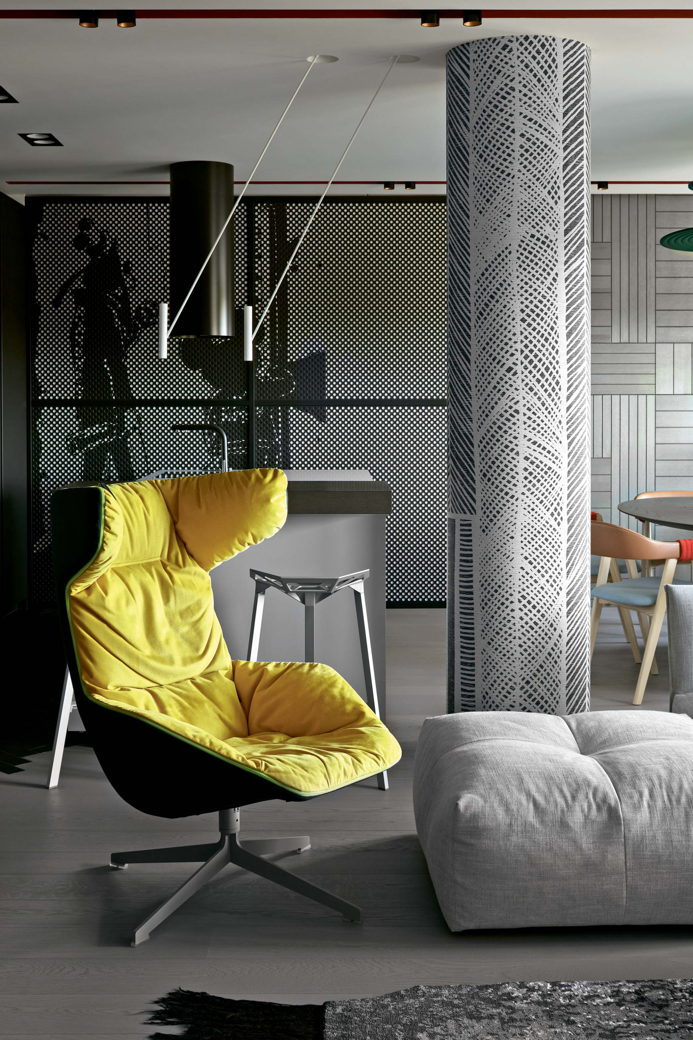 Новый проект студии «Детали» — колоритный современный интерьер с графикой в стиле поп–арт, яркими акцентами и мебелью — иконами дизайна