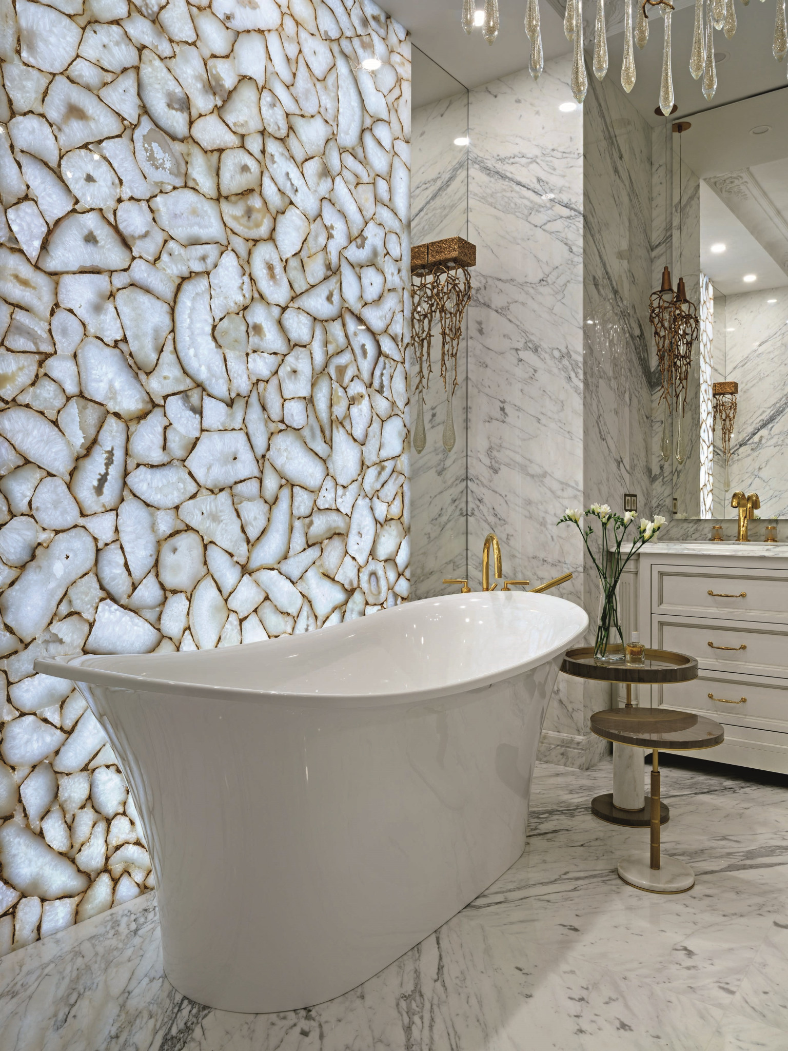 Проектирование бюро: DesartDecor (www.desartdecor.ru). Арт-директор: Диана Тараканова (www.dianatarakanova.ru), управление проектом: Александр Пригодич, дизайнеры: Юлия Волкова, Анна Капитанова, дизайнеры-визуализаторы: Василий Оглоблин, Евгения Бондарь, Илья Белетский, комплектация: Евгений Хмызников Работы по мрамору: компания Ammonit Stone (www.ammonit-m.site). Комплектация мебелью, светильниками: компания Lab Design (www.labdesign.su). Комплектация сантехникой: компания ООО «Европейская сантехника» (www.san4u.ru).