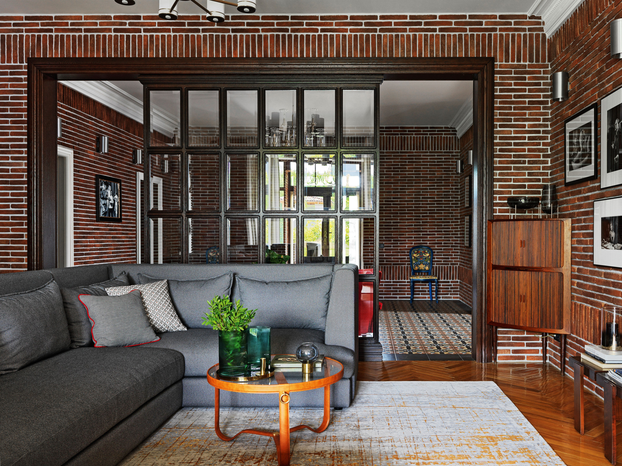 Брутально, по-мужски, в духе 60-х годов дизайнер Мария Фильштинская оформила интерьер загородного дома