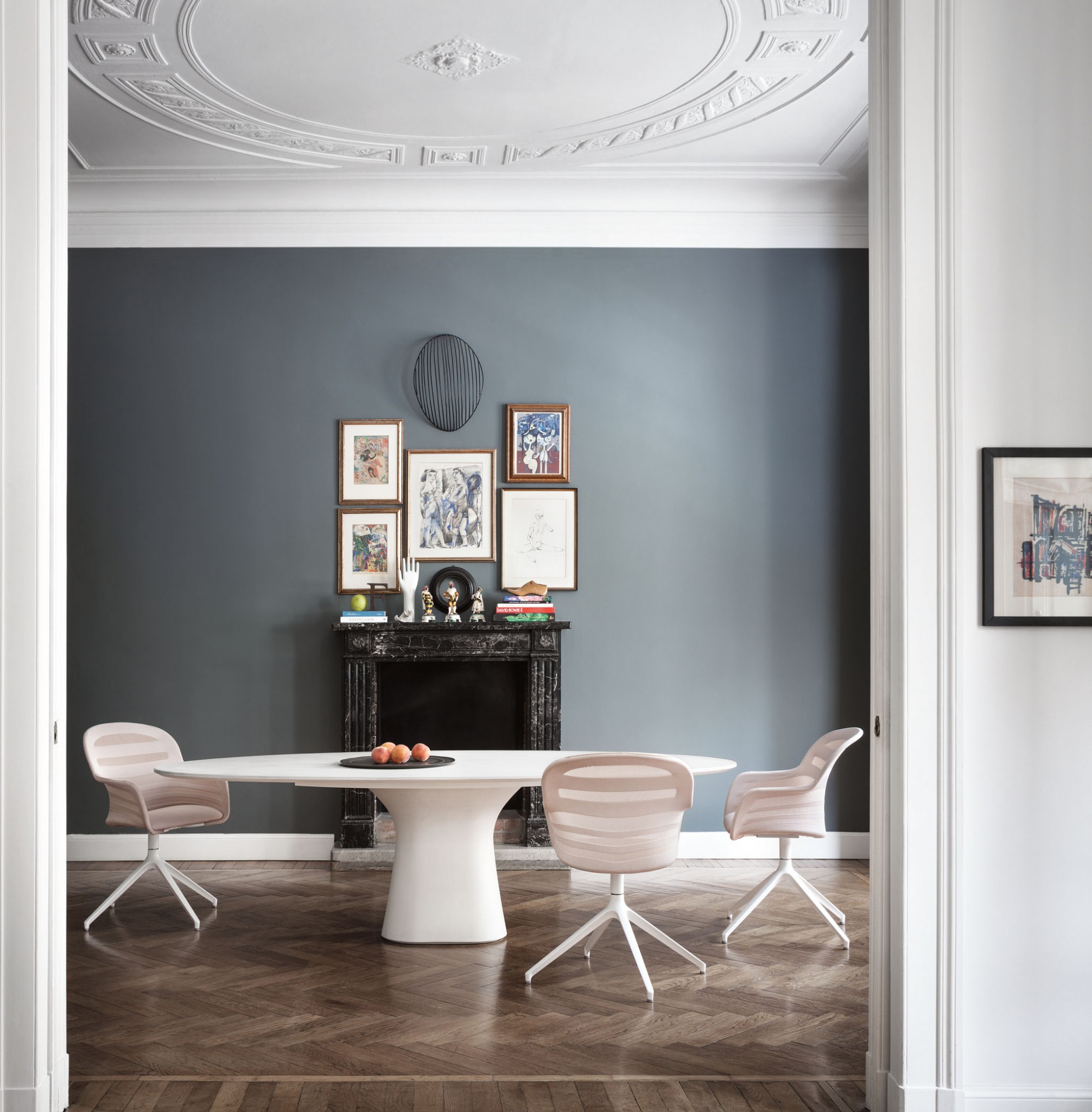 Одна из специализаций компании Bontempi CASA — обеденные столы и стулья, с дизайном которых она смело экспериментирует. Например, фигурное основание стола Podium сделано из цемента, а вот материалы столешницы варьируются. Это могут быть массив дерева, шпон, стекло, цемент или фирменный материал фабрики — супермрамор. www.bontempi.it