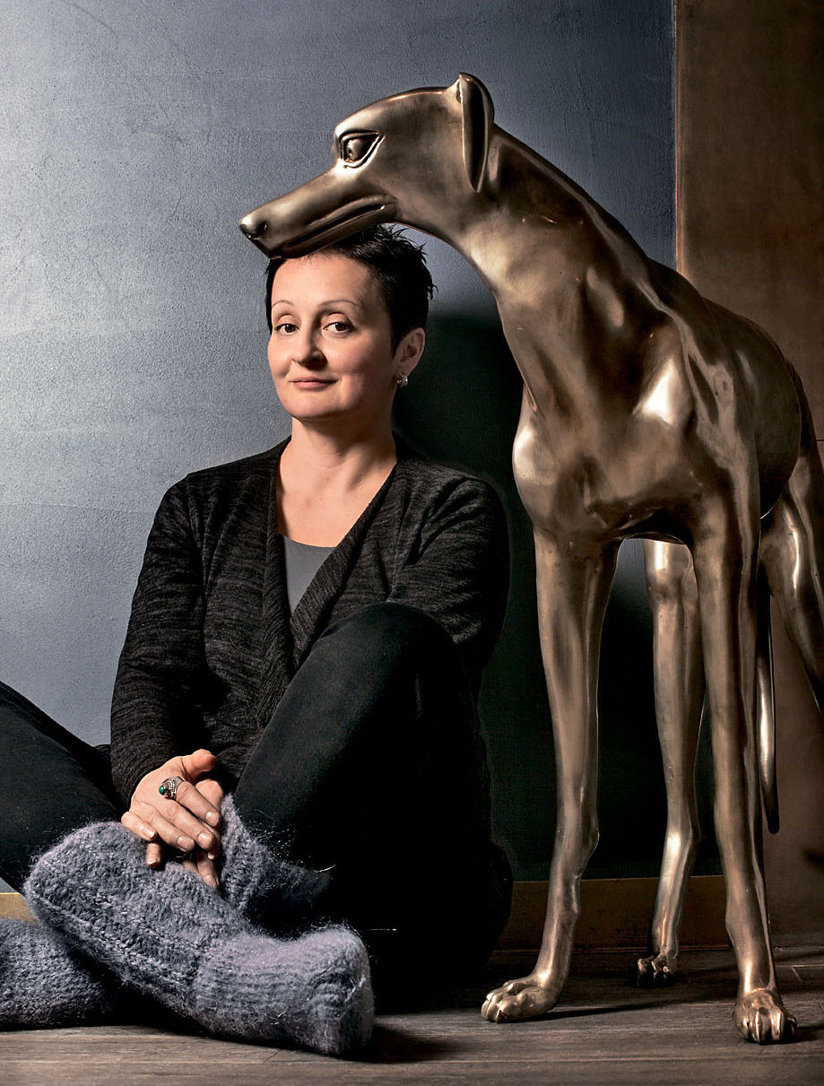 Фрагмент холла второго этажа. Здесь, как и в главной кухне, сохраняется легкая графика бруса, но под краской текстура дерева не читается, как того и хотела хозяйка. Скульптура, Егор Плотников