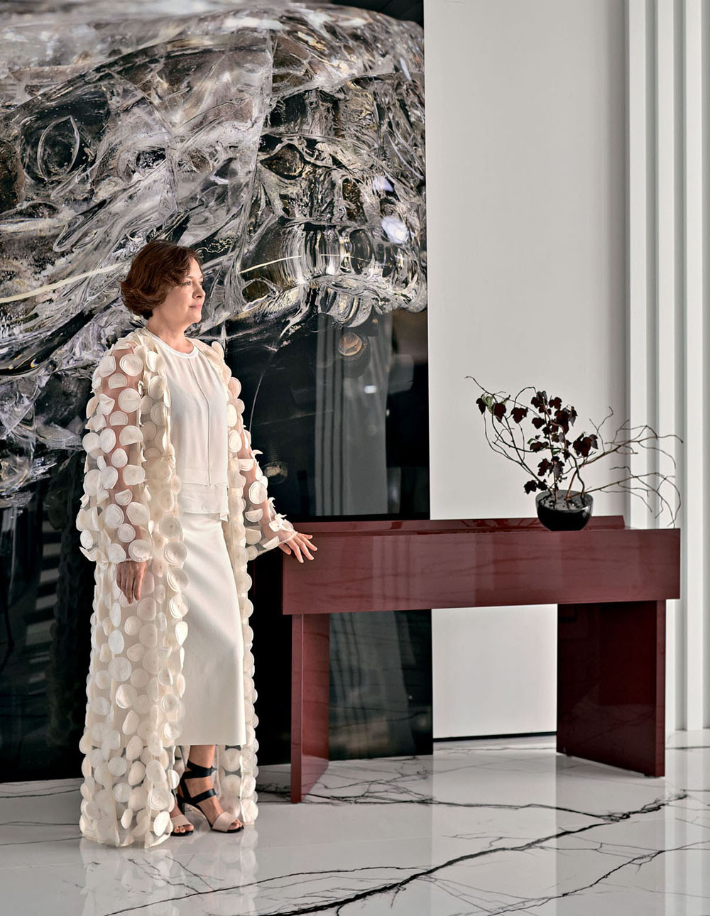 «Хозяйка много времени уделяет дому, — говорит автор проекта интерьера Елена Лукинская, — его декорированию, кулинарии и сервировке, поэтому с особым вниманием нами была проработана кухня, в частности предусмотрена специальная «гардеробная» для посуды, в которой хранятся сервизы, скатерти, столовые приборы. Заказчица принимала активное участие в подборе всех элементов мебели и декора, а в день сьемки активно помогала декорировать интерьер. Для нее важно, чтобы каждый артобъект имел глубокий смысл, а не просто был хорош визуально». Вот и ответ на вопрос, почему этот дом так тонко сочетает элегантность с домашним теплом и уютом.