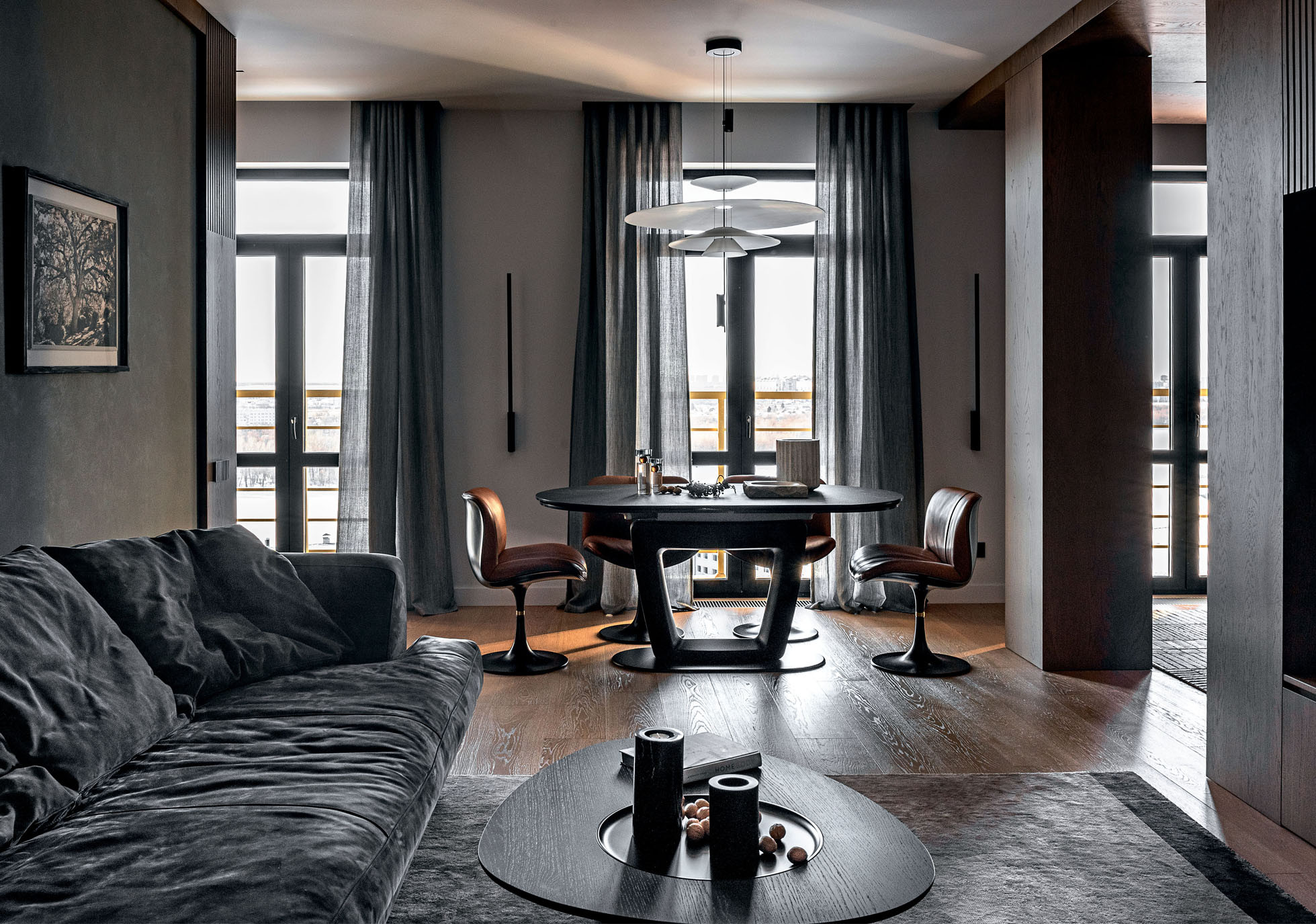 Екатерина Богачик: Заказчица, элегантная современная женщина, хорошо знала наши работы в современном стиле и обратилась к нам еще на этапе выбора недвижимости. Ей очень нравились видовые характеристики пентхауса и его расположение в центре Омска на слиянии рек Оми и Иртыша, но смущала относительно небольшая площадь. При работе над планировкой нашей главной задачей стало сохранение объема, воздуха и света.