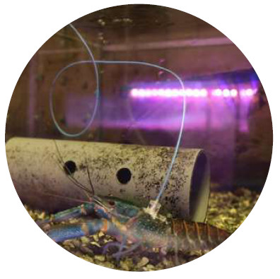 Для этого на карапакс раков (верхнюю часть панциря) над областью сердца прикрепляют оптоволоконный зонд, соединенный с системой автоматической регистрации и анализа кардиоактивности, то есть пульсации сердечной мышцы животных.