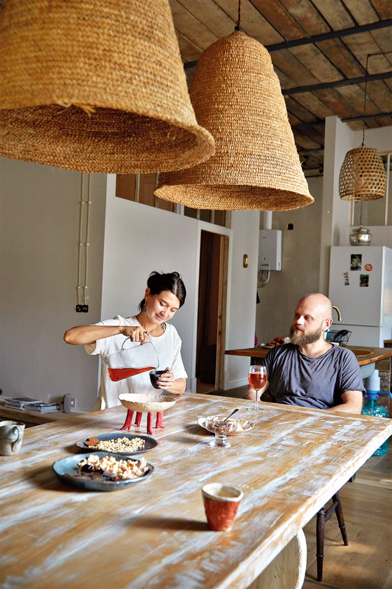 В этой семье намешаны разные традиции: Эли из Казани, Гордей — из Хабаровска, встретились в Таиланде, поженились, вместе поехали на Бали, прожили там шесть лет. Построили дом, про который Эли очень здорово говорит: «Он — будто кусок меда». В один момент пришло решение: пора возвращаться в Россию. Выбрали Питер. Наверное, по принципу контраста.