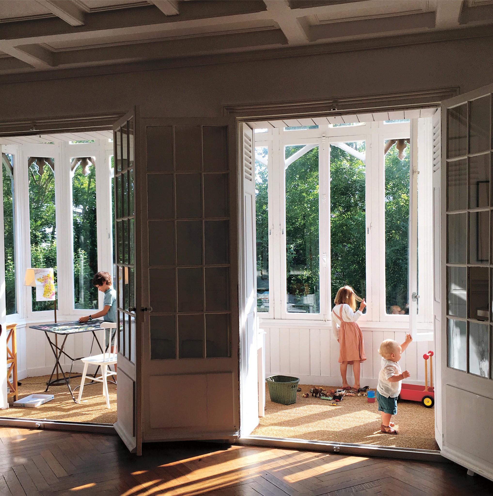 Трехэтажное здание, построенное в XIX веке, полно непоказной старины: высокие потолки, камин, паркет, изгиб узкой лестницы. А еще свет, льющийся в огромные окна, которые делают дом похожим на огромную теплицу. Конечно, Эжен влюбилась в это пространство, когда они пришли с мужем сюда десять лет назад.
