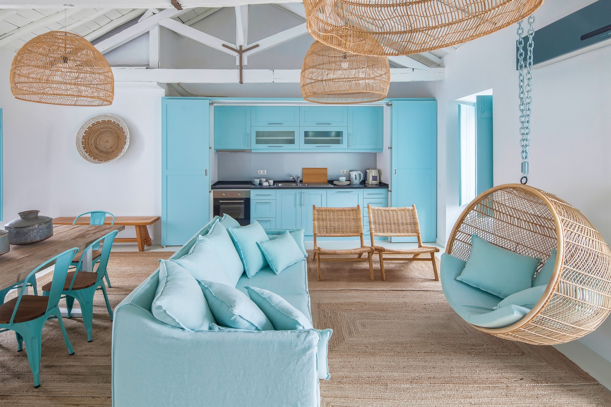Португальский дизайнер Лижия Казанова работает с интерьерами почти 25 лет. После успешной карьеры в рекламе ей захотелось видеть в своей работе больше смысла. Так она стала заниматься дизайном жилых и общественных интерьеров. Ее девиз «Создавать пространства для счастья» воплощается в каждом проекте. И особенно в этом бирюзовом доме в Алкасер-ду-Сал.