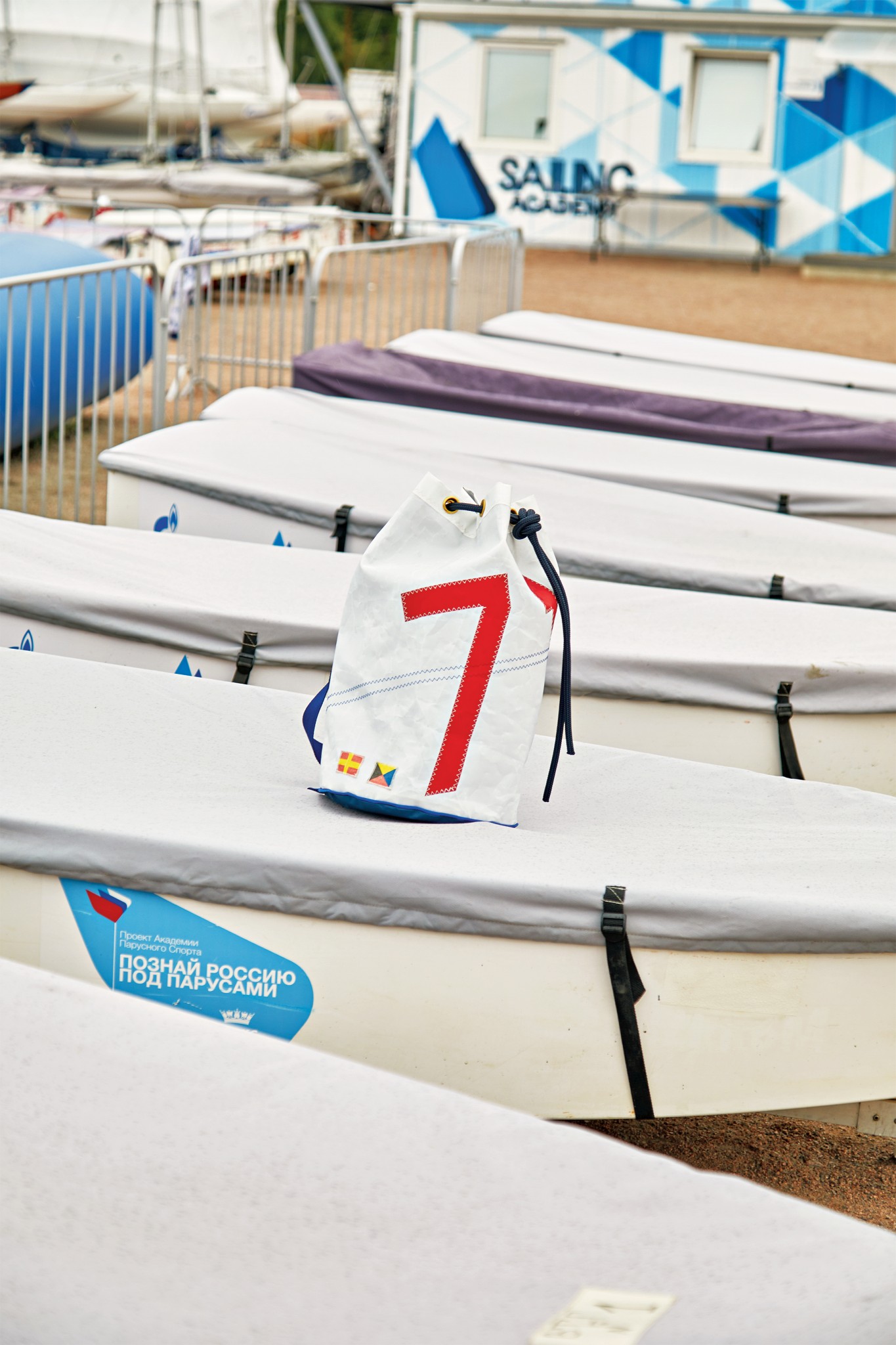 Сперва в основе идеи Лены Бронской был ресайклинг — шить сумки из старых парусов. Идея красивая, но паруса — они ведь не кипенно-белые, а потрепанные ветрами, обожженные солнцем, просоленные. Не всем это нравится. Так что сейчас Лена делает сумки и из старой, и из новой парусной ткани, используя цифры и буквы, которые есть на каждом парусе, соединяя в дизайне традиционные для морской темы цвета: белый, красный, синий.