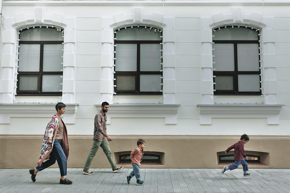Эта съемка — одна из самых ожидаемых: когда-то мои знакомые ездили на свадьбу в Таджикистан, а оказалось, что это была свадьба Анны Давыдовой и Аюбджона Зокирова. Разглядывая те фотографии, я поняла, что чапан — это очень красиво, а позже узнала, что, оставшись в Средней Азии, Аня основала бренд «Атлас мира». В этом году она приняла участие в маркете Seasons. Тогда мы и решили, что надо обязательно снять Аню, ее семью и чапаны в городских декорациях. В результате у нас вышла не только съемка, но и очень личная история.