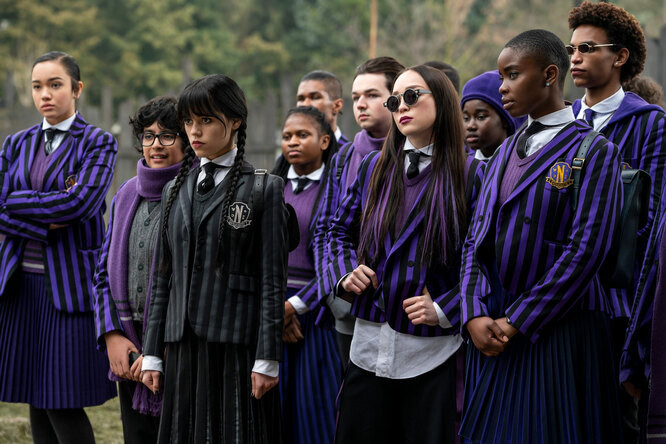 Сериал для любителей мрачных историй режиссера Тима Бертона и странной готичной семейки. Уэнсдэй Аддамс (Дженна Ортега) вылетает из школы «для простых смертных» из-за убийства своего одноклассника (и да, родители замолвили словечко за юную преступницу). Теперь ей придется осваиваться в частной школе Nevermore — академии-пансионате для магических существ и иже с ними (а еще расследовать серию загадочных убийств новых одноклассников).