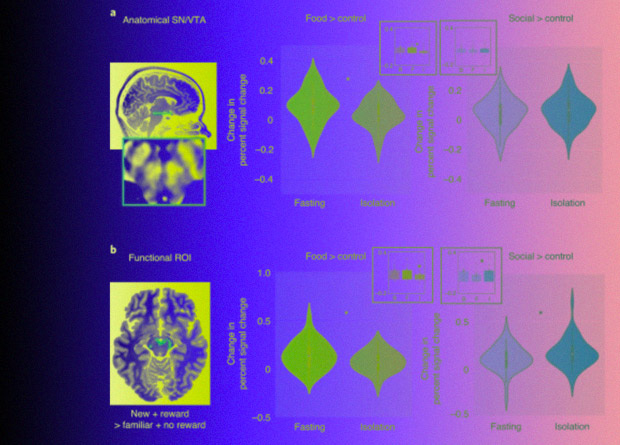 Ученые из Массачусетского технологического института под руководством Ливии Томовой (Livia Tomova) решили подробнее изучить процессы в мозге человека после социальной изоляции и голода. Для экспериментов они пригласили 40 здоровых добровольцев, каждый из которых прошел три теста в разные дни. В первом участника изолировали от живого и интернет-общения на десять часов, во втором — запретили есть в течение десяти часов, а в третьем никак не ограничивали.