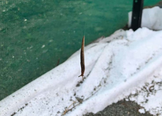 Слизень из Австралии построил мостик из слизи и спустился по нему на землю