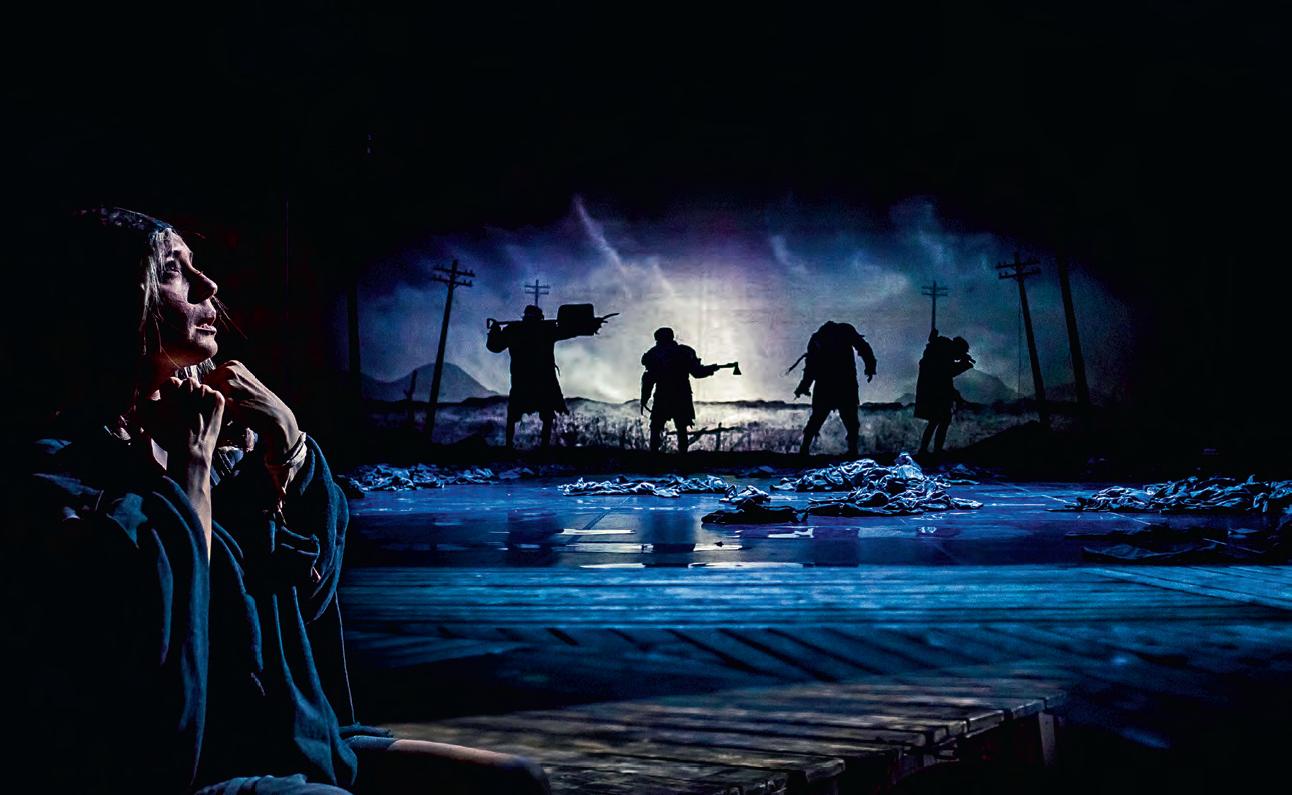 Я все думала: какое стихотворение прозвучит первым в спектакле «Гоголь-центра» «Мандельштам. Век-волкодав»? Выбор оказался небанальным. «Когда я свалюсь умирать под забором в какой-нибудь яме…» – это перевод с грузинского. Поэт Нико Мицишвили, расстрелянный в 1937-м, пророчески написал эти строки еще в 1921-м. Так все сразу встало на свои места: постановка Антона Адасинского (вторая в замечательном поэтическом проекте «Звезда», придуманном Кириллом Серебренниковым) – она о страшном, о последних годах затравленного властью поэта, о лагере, где сгинули миллионы и где в декабре 1938-го под Владивостоком умер Мандельштам. Поэтому и появляются в самом ее начале, как будто из-под земли, прямо из преисподней, не люди – упыри на копытах с руками-рогатками. Это они будут вершить чужие судьбы, и это в их мире, где главный пейзаж – бескрайние гулаговские просторы с электрическими столбами, прозвучат гениальные строки, очевидно, для некой гармонии мироздания. И толпа заключенных в черных одеждах с босыми ногами будет жадно их слушать.