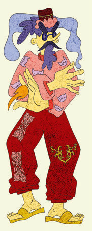 Но он недолго радовался. Пришли к нему в офис три богатыря в кожанках и забрали часть выручки себе. Сказали: «Мы от Волкова Иван Петровича, запомни. Каждый раз будешь ему четверть выручки давать, он здесь главный». Расстроился Оскюс-оол, перенес бизнес в другой район, на перекресток шести улиц, арендовал место похуже и подороже. Богатыри в кожанках пришли и туда, вновь забрали свой процент и четверть товара со склада в придачу. Отправился Оскюс-оол с тремя четвертями товара на новое место, на самую окраину, на перекресток трех улиц. Думает: уж сюда богатыри Волкова Иван Петровича не доберутся. Но богатыри снова приехали. Так они забирали деньги, пока бизнес Оскюс-оола не обанкротился и не осталось средств даже на аренду склада. Для выплаты долгов пришлось продать квартиру с бытовой техникой и фальшивыми колоннами у стен. Осталась лишь машина.