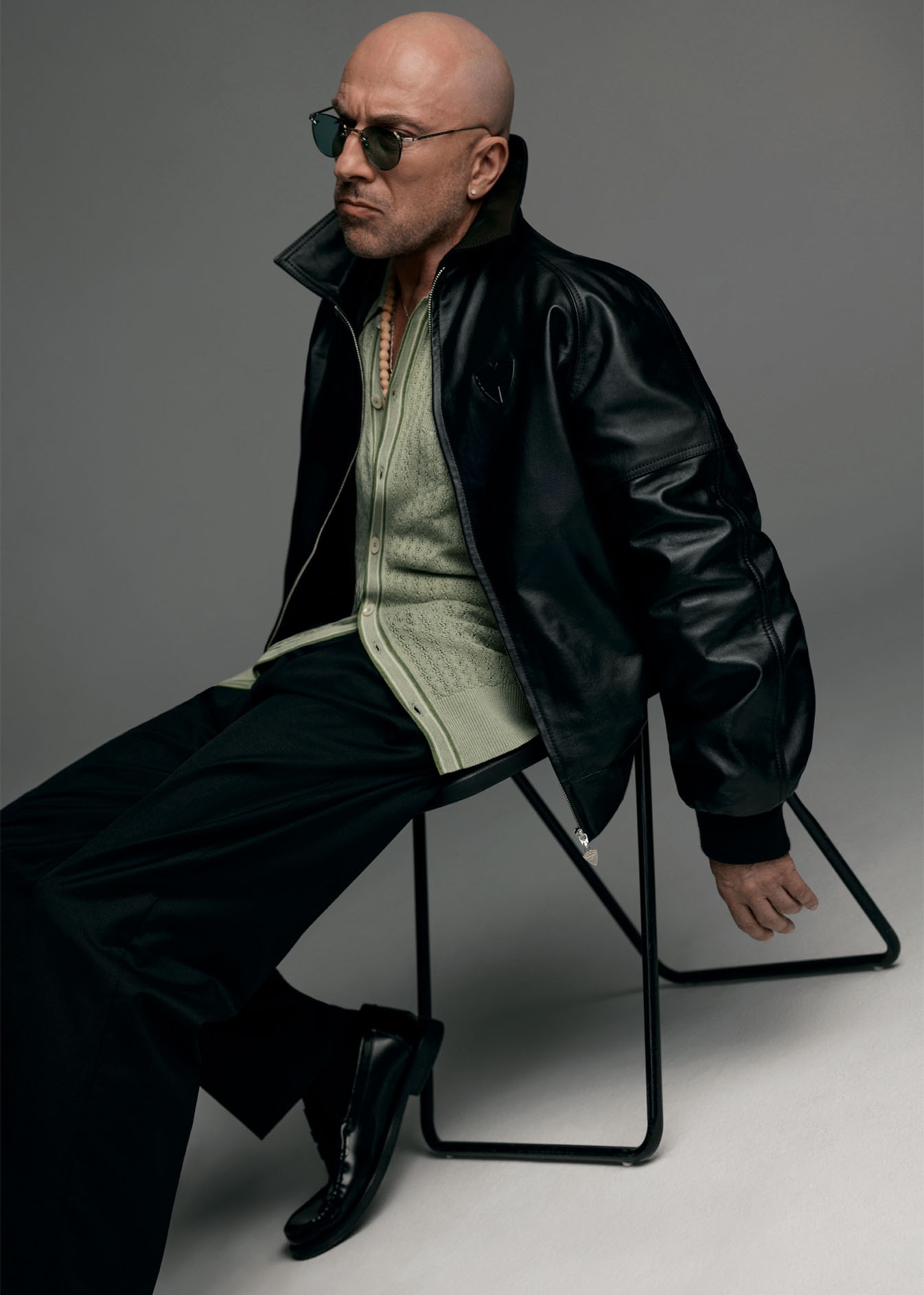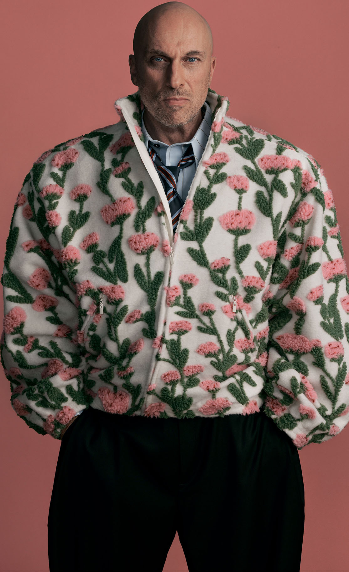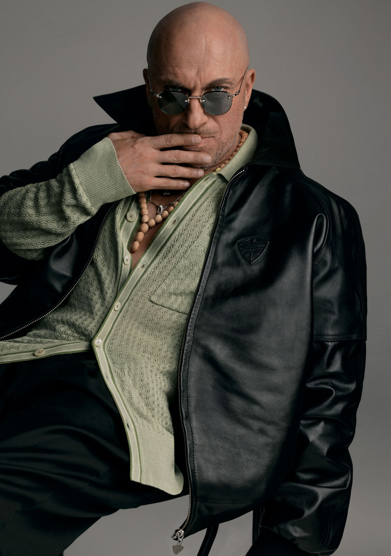 Редация Собака.ru прильнула к Дмитрию как к родному утесу на топких берегах. Было все: фотографировались в халатах с уточками (от победителя нашего конкурса «Новые имена в моде — 2025» Даниила Объюхова!), примерили бандитские кожанки (от городского стритвир-авторитета Константина Рязанцева из «Питерского щита») и бомбер с розочками (привет, Александр Рогов!). И даже попробовали на зубок брошь — нефритовый огурчик Letters and Stones!