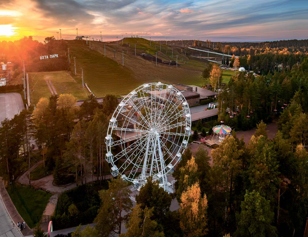 Любимый петербуржцами «Охта Парк» (всего в десяти километрах к северу от Петербурга!) 30 лет назад начинался с «дикой» горнолыжки, а превратился в модный всесезонный курорт на территории почти 100 гектаров. Зимой сюда едут кататься на лыжах и бордах и делать тройной тулуп на исключительно фотогеничном ледовом катке среди сосен. Летом — гулять по веревочному парку, загорать у бассейнов и играть в теннис и мини-футбол. В отеле и коттеджах с каминами, террасами и уличными джакузи можно провести весь отпуск или приехать на уикенд — отпраздновать день рождения или просто отоспаться. Тем более что несколько ресторанов, бани, суперновый спа-центр и парк развлечений (с колесом обозрения высотой 37 метров!) работают круглый год.