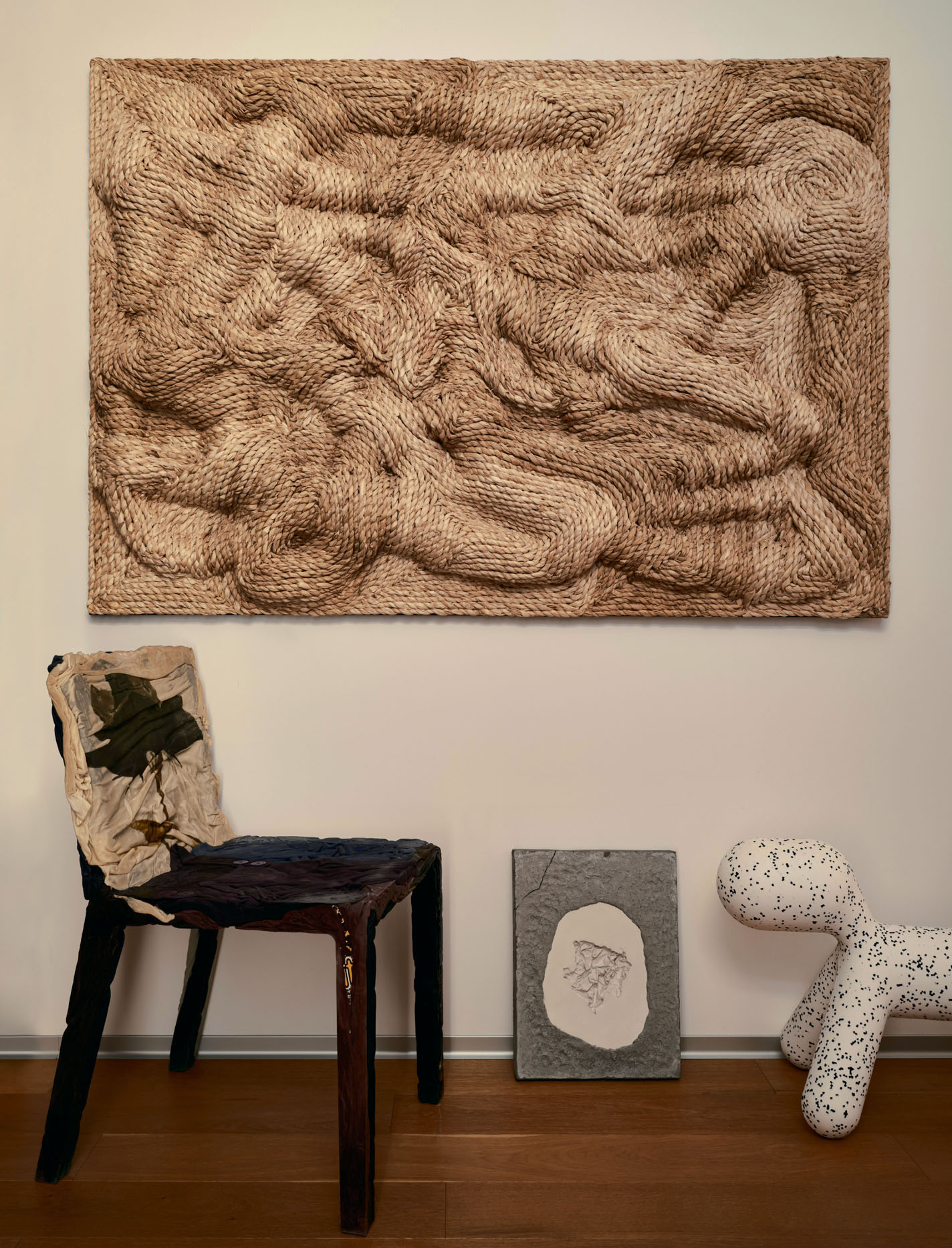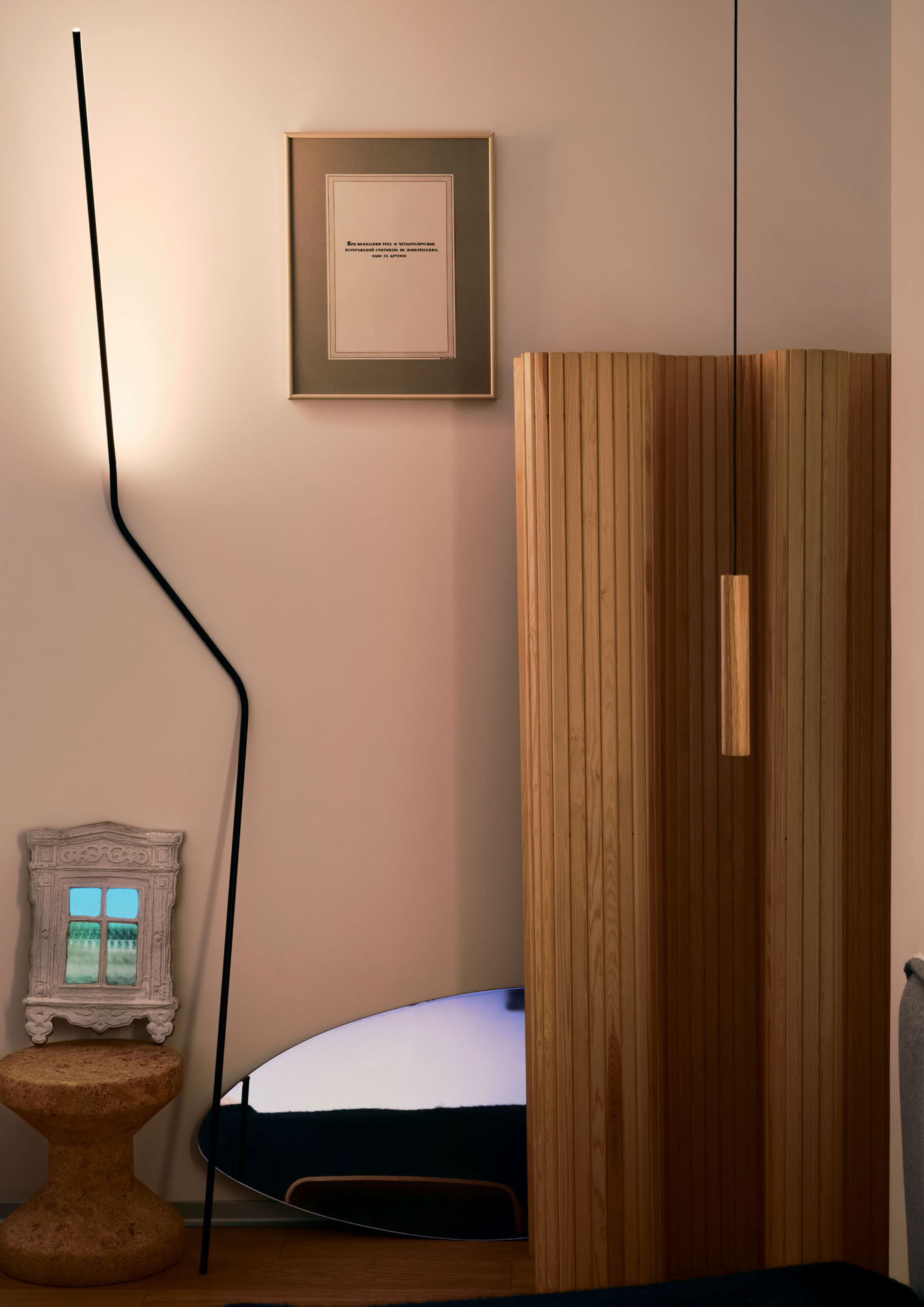 В моей московской квартире я сделал акцент на коллекционном дизайне: смотрю на культовые кресло Eames Lounge или диван Vladimir Kagan — и меня это так вдохновляет, что я оставил белые стены, чтобы ничего не отвлекало глаз, поэтому почти все искусство живет в Петербурге. Самую первую работу я купил 13 лет назад на одной из первых ярмарок совриска в лофт-проекте «Этажи», это была графика стрит-артиста и куратора Максима Имы. Ее я подарил своему другу детства, генеральному директору производства Gate31, так что всё в надежных руках. Он мне недавно прислал фото своего стола, над которым эта графика и висит. Я переслал фото Име — и он такой: «Ого! Это же 2007 год!»