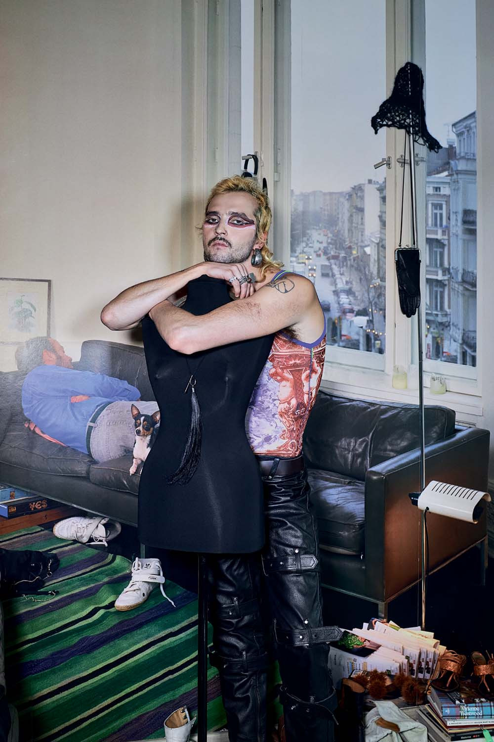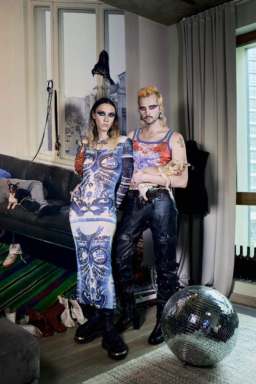 Китти: Конечно! Тотал-луком десятилетней давности Jean Paul Gaultier: это футболка с платьем, расписанным бабочками по мотивам работ Сальвадора Дали. Есть два костюма Mugler Couture и кожаный топ-болеро, в похожем как-то выходила Ким Кардашьян. Мы в основном собираем авангард и панковское направление: Vivienne Westwood, Maison Martin Margiela, Jean Paul Gaultier.
