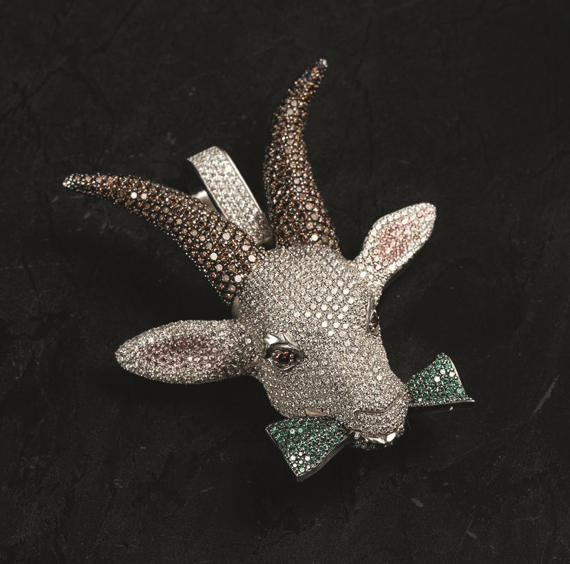 Как правило, это большие «кубинские» или якорные цепи, часы в бриллиантах, много золота, а еще кастомизация — в ход идут мультипликационные герои, символы, логотипы. Что-то необычное, что нельзя найти в магазинах. Но это не contemporary, а крупные кричащие вещи, что-то типа «Смотрите, какие у меня нереальные часы!». Часто такие используются в съемках клипов. В рэп-культуре артисты всегда соревновались друг с другом, кто круче. Но последний тренд — удивлять не количеством драгоценностей, а креативом и сложностью изделия: оно может трансформироваться, открываться-закрываться, в нем может быть что-то спрятано внутри. Мы когда-то начинали с простых форм, а теперь делаем даже подвижные украшения, собранные из сорока деталей. Рэп-ювелирка — далеко не единственное наше направление. Мы решили двигаться от кастома в сторону создания собственного бренда и выпустили первую коллекцию. Начали с десяти изделий, а в итоге у нас в производстве около шестисот. Проработали фирменный стиль, запускаем новый сайт — в июне полностью поменяется картинка, она будет шикарной. Наш фирменный цвет — изумрудный. Очень люблю все его оттенки: нашим первым кастомом был темно-зеленый Volkswagen Touareg, инкрустированный изумрудами.