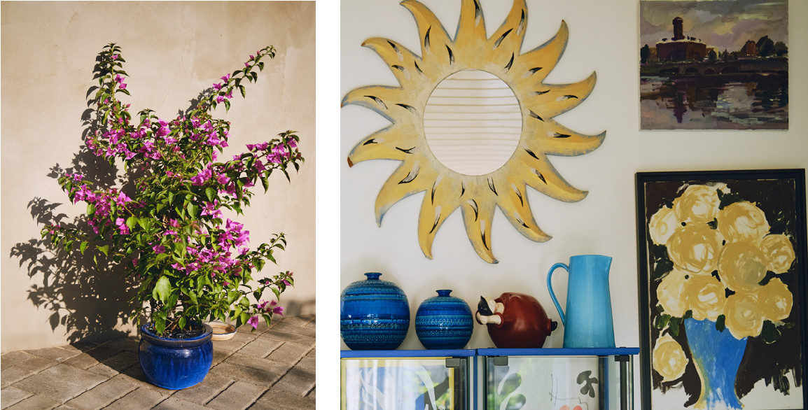Очень помогла команда ландшафтного бюро «Мох»: в конце июля я поняла, что мне срочно нужны мальвы, я жить без них не могу, — и вот, пожалуйста, посмотрите на эти экземпляры высотой в два метра. Мальвы еще стоят и будут держаться до осени, до последнего бутона. Ребята из «Мох» привезли мне и горшечные растения: садовую бугенвиллию, колеус, дипладению блестящую и сказочную штамбовую розу флорибунду сорта «леонардо да винчи» — на зиму я отдам их на хранение в оранжерею.