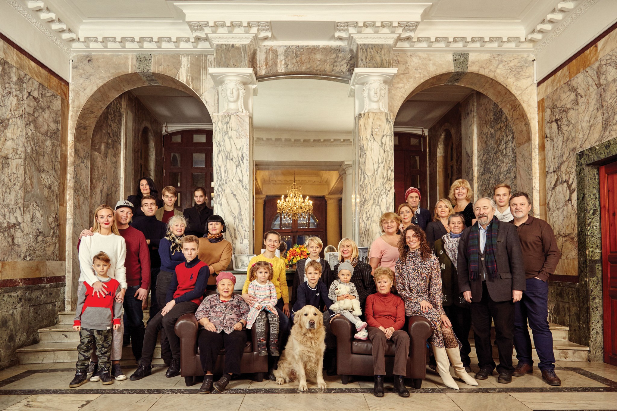 Самым сложным был вопрос подбора мрамора: современный каррарский не подходил по цвету, поэтому на стены пошел турецкий, а на лестницу — уральский. Одно из последних дополнений в интерьере — хрустальная люстра, купленная новым соседом Максимом.