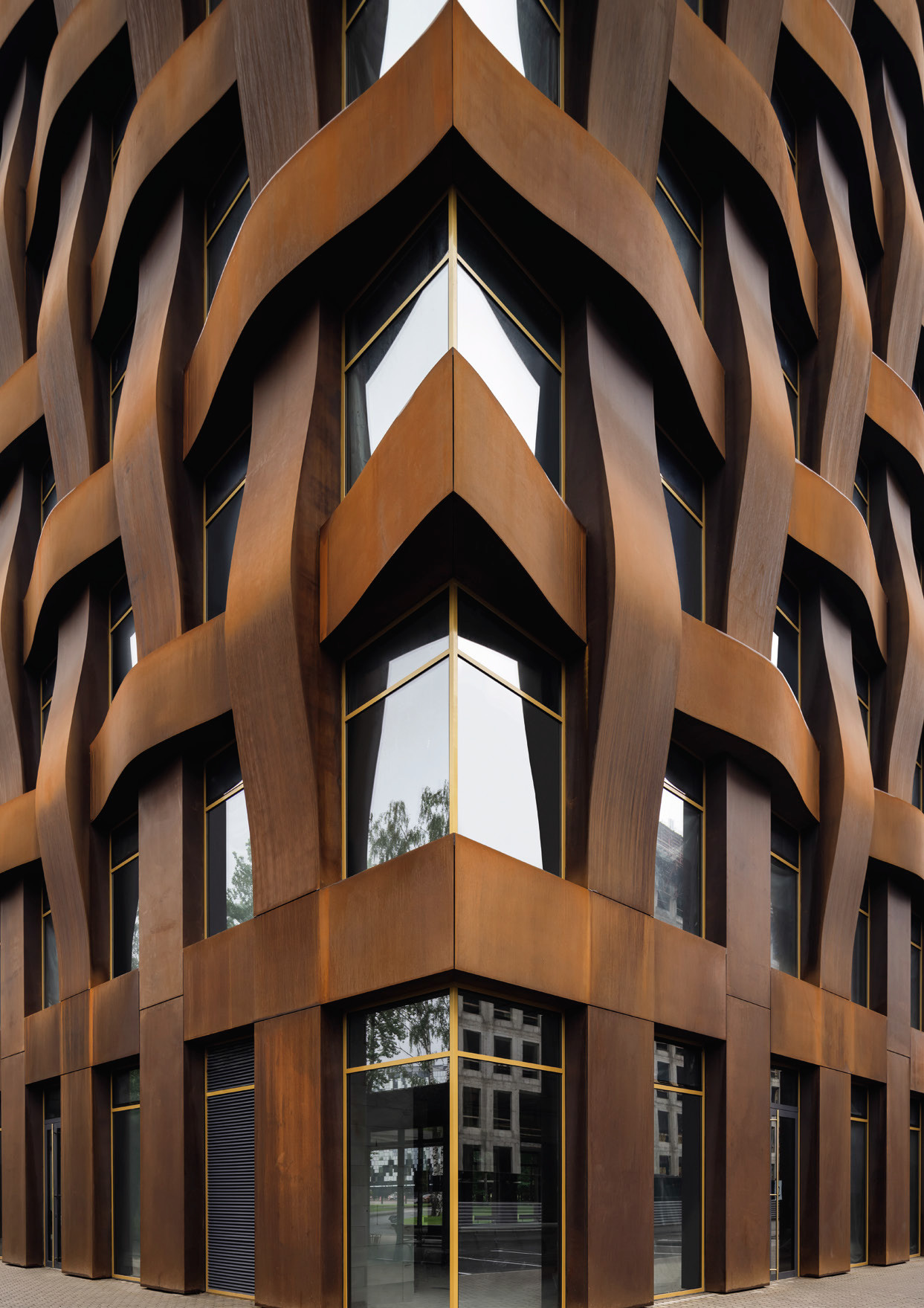 Новейшая сенсация: два здания «Феррум» — одни из первых в России, облицованные кортеновой сталью. Металл искусственно окислен и выглядит как будто бы ржавым от времени. Узор на фасаде объемный, панели сплетаются друг с другом, как нити в ткани. «Феррум» получил международные награды, включая премию за лучшее здание, от Чикагского музея архитектуры и дизайна «Атенеум». Одно из зданий бизнес-центра почти полностью занято компанией Yandex.