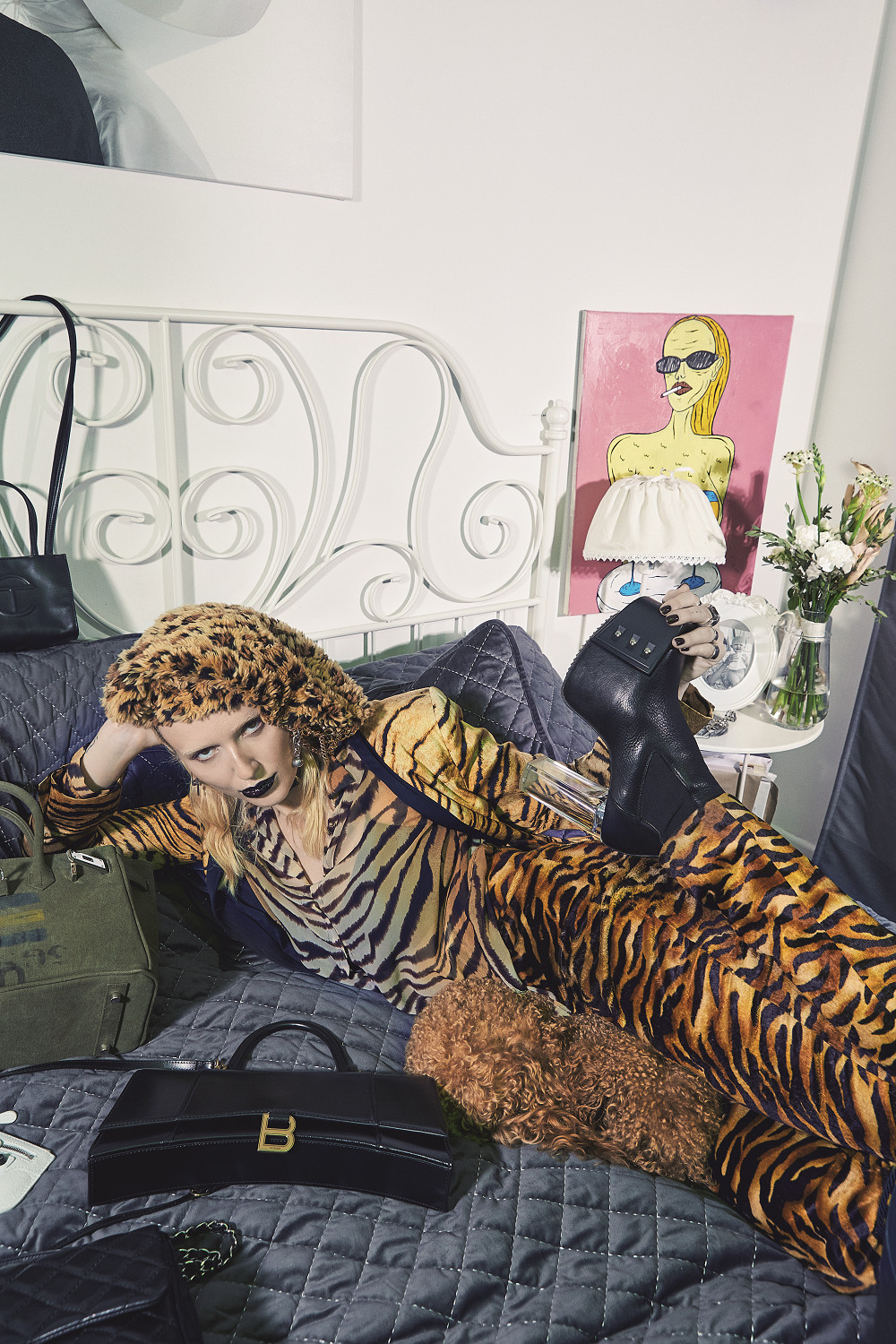 В Париже я познакомилась с основателями бренда Fecal Matter Стивеном Раджем Бхаскараном и Ханной Роуз Далтон, такими суперавангардными фриками, они известны нереальным мейкапом и выбеленными лицами. И меня спросили: «О, ты в шубе своего бренда?!» Я чуть не упала, хотя знаю, что на мои соцсети подписано много иностранцев, инфлюенсеры с сотнями тысяч подписчиков, подружки Канье Уэста и — внимание — сам Канье, а стилистка Джулии Фокс и вовсе заказала тотал-лук моей марки The Sxslvt.