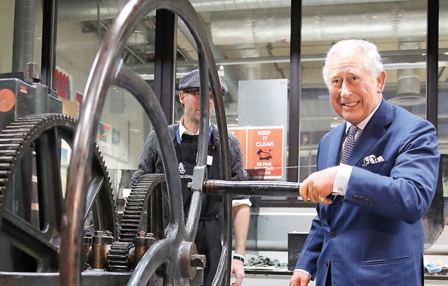 Вращайте колесо, господин Чарльз! Старший сын Елизаветы II регулярно поражает навыками, которые не свойственны монаршей особе: то он строгает табуретки, то выращивает розы, то рисует план пристройки к одному из замков семьи, то разводит кур... На этот раз попробовал в действии пресс Хокни: с помощью такого механизма создают гравюры.