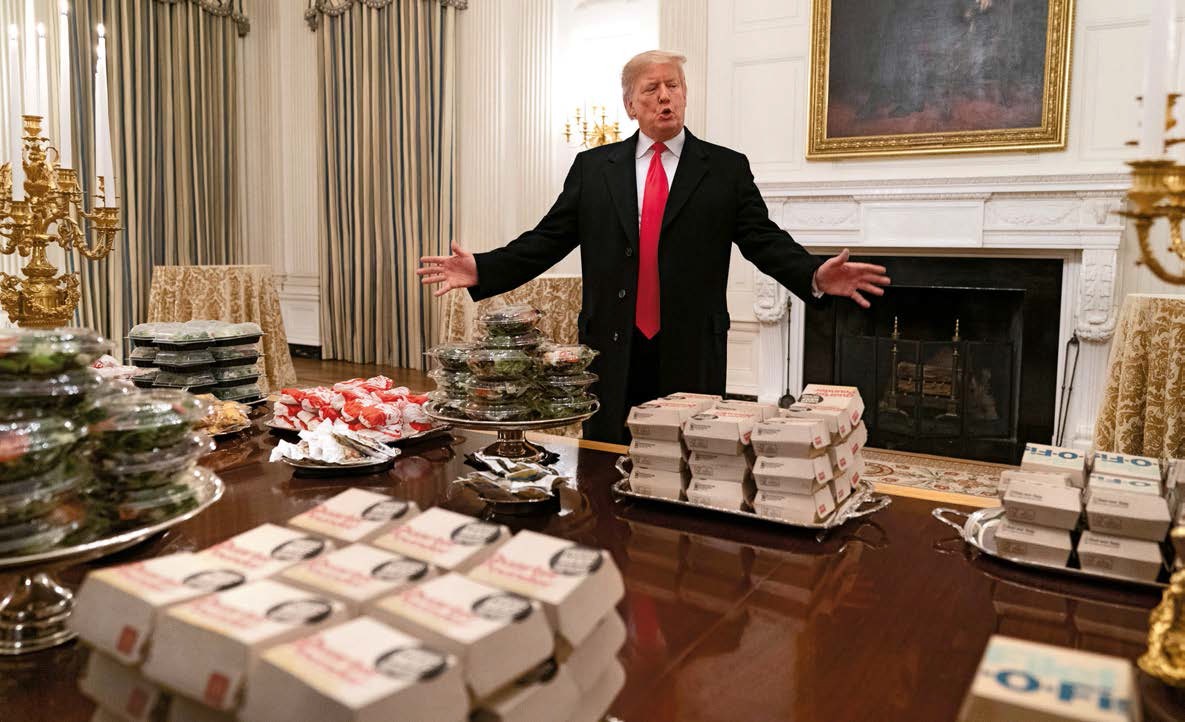 Тренер запретил, но сам президент разрешил! Дональд Трамп накрыл в Белом доме «шикарный» стол для футболистов команды Университета Клемсона, которая выиграла национальный студенческий чемпионат. Столы ломились, но не от икры и лобстеров, а от обычного фастфуда. Глава страны заявил, что это любимая еда молодых людей. Ну да, где же еще они бы такое поели!