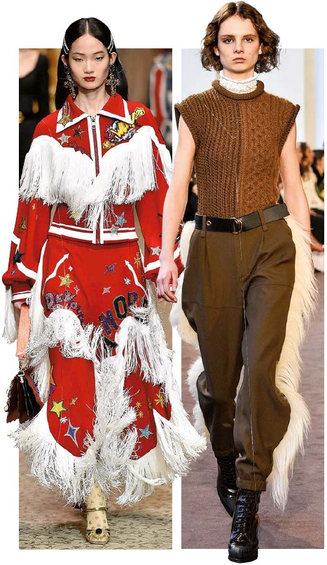 Прослеживается акцент на смелые и не совсем романтические образы. В моде стиль «вестерн». Помните фильмы про Дикий Запад и ковбоев? Этнические принты, замша или казаки с джинсами – выбирайте то, что душе угодно. В магазинах уже появляются различные пончо и куртки с бахромой. В качестве аксессуаров можно использовать крупные серьги и амулеты в индейском стиле. Еще один «воинственный» тренд – милитари, который не сдает позиции и продолжает лидировать.