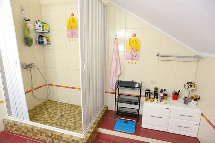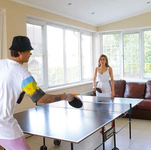 Пространство разделено на две части. На первом этаже расположены кухня, столовая, гостиная и гараж. На втором – спальня, ванная комната и тренажерный зал, где есть даже настольный теннис.